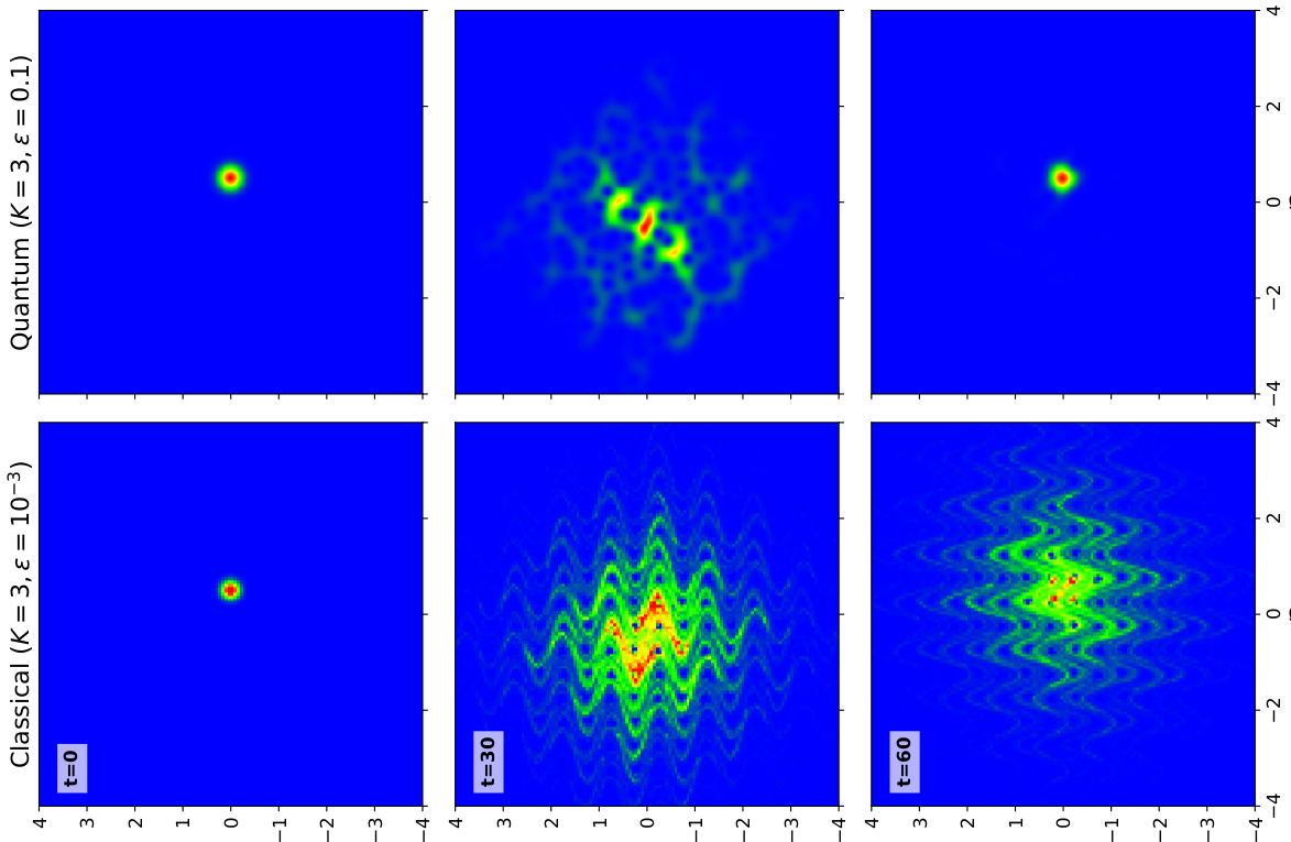 at tr=30, here K=3, hbar=1, noise amplitude eps_q=0.1, supmatvideo2 (here) Time reversal of classical evolution